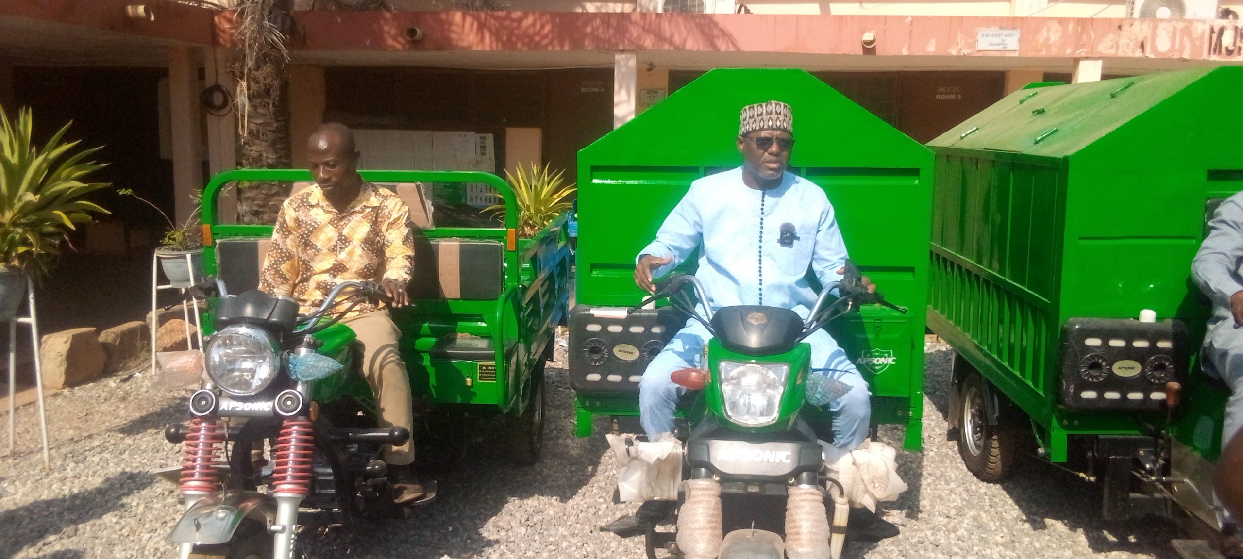 Management of wa municipal Assembly presented three (3) tricycles to the transport officer of the Assembly to enhance waste collection in the municipality. The transport officer in return hand over the tricycles to the environmental health officer in charge to use the tricycle for the stated purpose to keep the municipality clean.